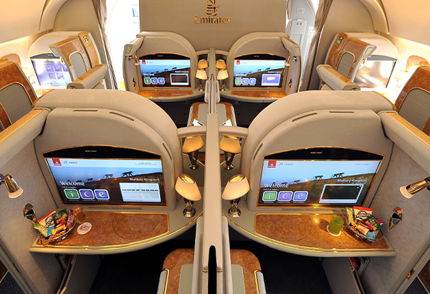 - 非日常的な体験を味わうことができるファーストクラス。まるでホテルにいるかのような快適なプライベート空間で、静寂と安らぎのひとときをお過ごしください。ご搭乗の前後には、専用ラウンジや優先レーンなど、旅を快適にする上質なおもてなしが用意されています。