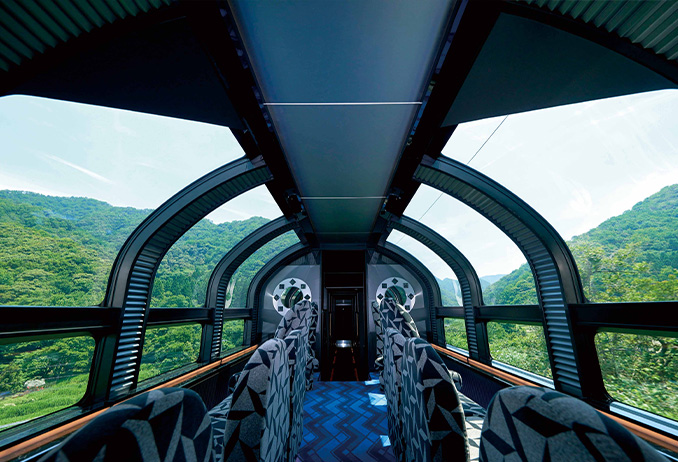 空まで望むことができる開放的な展望室から雄大な景色や星空といった車窓をお楽しみいただけるとともに、展望デッキでは沿線の風を感じていただけます。