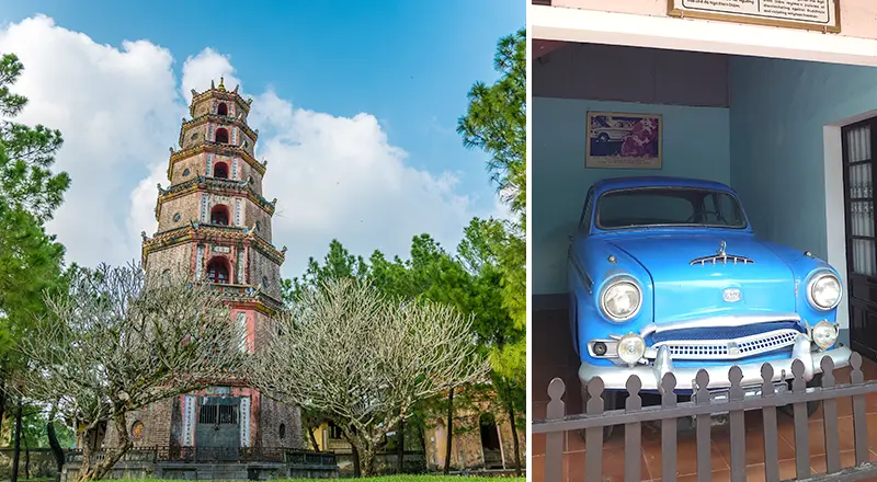 ティエンムー寺はフォン川を一望できる丘の上に建ち、フエに存在する最古の仏教寺院として知られています。