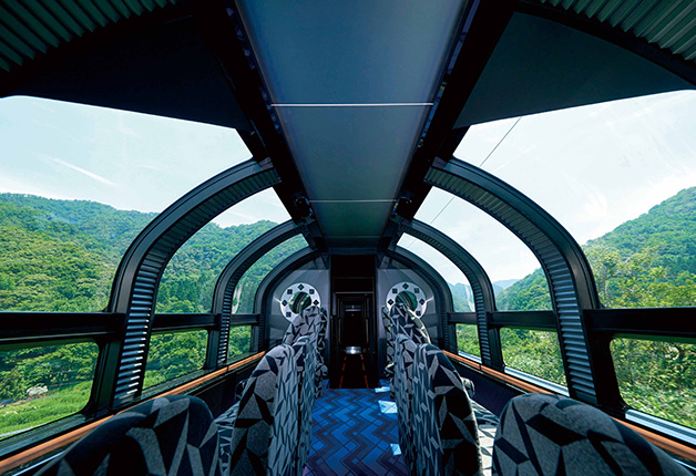 空まで望むことができる開放的な展望室から雄大な景色や星空といった車窓をお楽しみいただけるとともに、展望デッキでは沿線の風を感じていただけます。