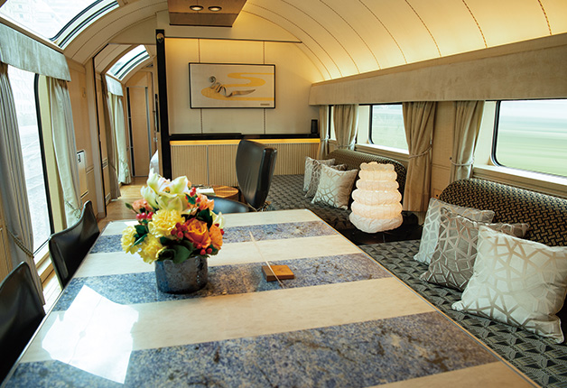 世界的にも希少な1両1室の広いスペースで、エントランスやプライベートバルコニー、リビング・ダイニング、寝室、バスタブ付きバスルームを備えたスイートと呼ぶにふさわしいしつらいです。