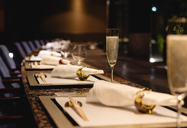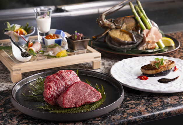 シェフが目の前で焼き上げる鉄板焼を堪能