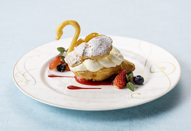 バレエ《白鳥の湖》をイメージした特別デザート「スワンシュークリーム」をご用意
