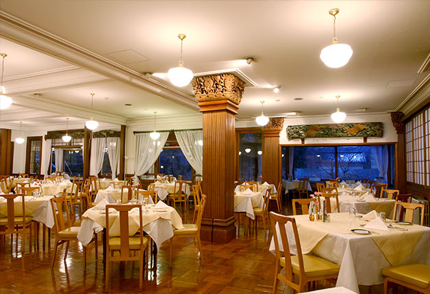 歴代の料理長から受け継がれてきた金谷ホテル伝統のフランス料理をお召し上がりいただけます。格調高い雰囲気の中、最高のサービスでお楽しみいただけます。 夕食は選べるコース料理を、朝食はアメリカンブレックファストをご用意しております。