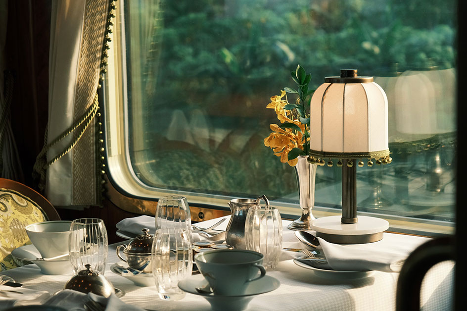 車窓に流れる景色を堪能しながら、夕方にはアフタヌーンティーをお召し上がりいただけます。夕食後は、バーカーにてピアノの生演奏を聴きながら色鮮やかなカクテル(別途代金)などお楽しみください。 東南アジア初の「ディオール スパ」ではリラックスしたひとときとトリートメントなどが体験できます。(別途代金)