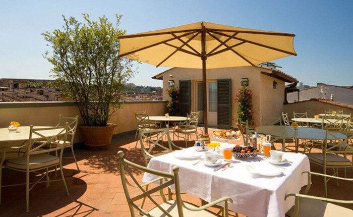 サンタマリア ノヴェッラ教会の向かい、ショッピングに便利なトルナブオーニ通りへは徒歩5分、ドゥオモへは7分に位置します。各客室は、それぞれ内装の色が異なるものの、テーマはフィレンツェ風のクラシックで上品な装い。浴室は大きく白の大理石で高級感を演出。バス用品もオリジナルのグッズを備え、女性のお客様に好評です。