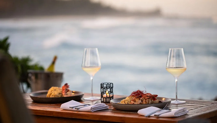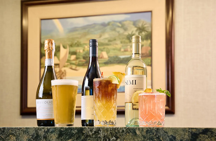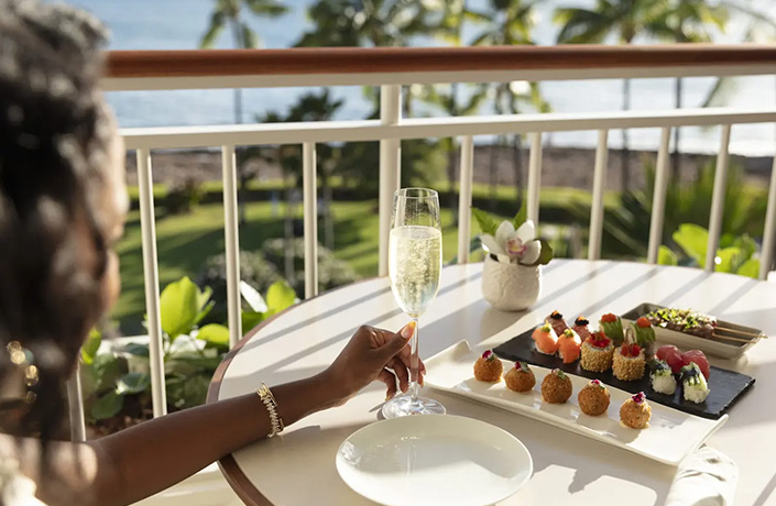 刻々と色を変えるサンセットを望みながら、軽食とともにシャンパンやカクテルを。ハワイの風を感じながら満たされる、極上のカクテルタイム