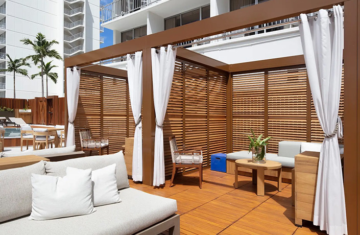 - ロングボードクラブラウンジ内、テラス席のカバナが無料でご利用いただけます。カバナの予約は現地到着後、ロビーの日本語ゲストサービスにご相談ください。(空席状況によりご希望どおりご利用いただけない場合もございます)
