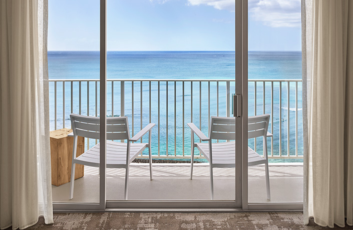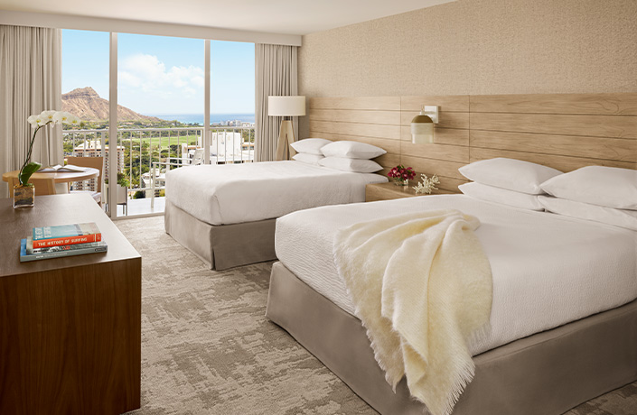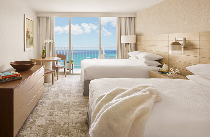 アロヒラニ リゾート ワイキキ ビーチ(ラウンジアクセス付きビーチサイドタワー・プレミアオーシャンフロント・ベッド2台の客室)に滞在