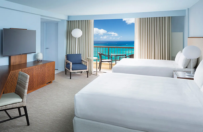 ハイアット・リージェンシー (ラウンジアクセス付き ダイヤモンドヘッドタワー30階以上オーシャンフロント・ベッド2台の客室)に滞在