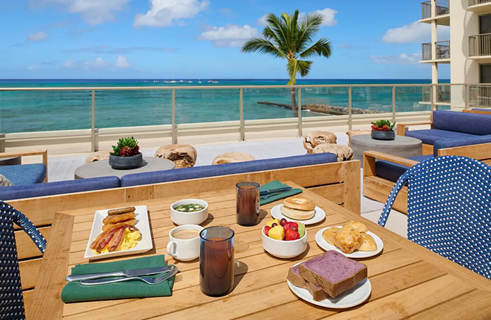- トロピカルフルーツや卵料理に加え、ローカルメニューも充実。爽快な海を眺めながらハワイの朝を感じる朝食体験ができます。