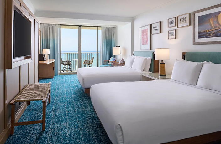 アウトリガー リーフ ワイキキ ビーチ リゾート(ラウンジアクセス付き クラブオーシャンタワーオーシャンフロント・ベッド2台の客室)に滞在