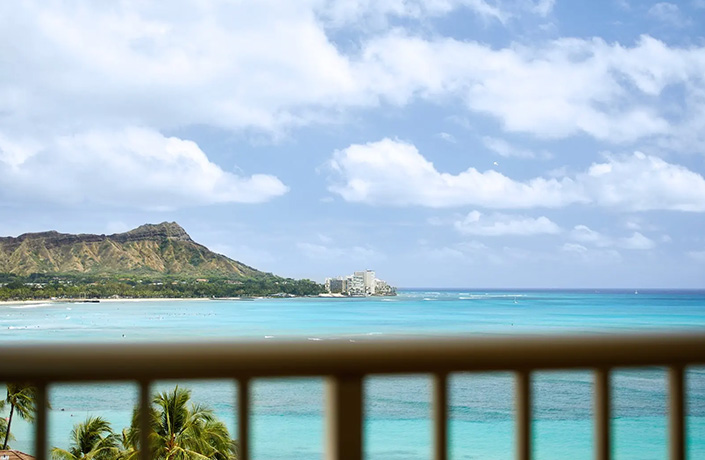 - 海が真正面に見えるお部屋。一面に広がるワイキキビーチの景色をお楽しみいただけます。