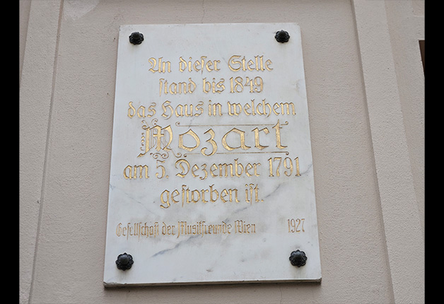 - モーツァルトの亡骸が運び込まれ、告別式が行われた場所。その悲劇的な最期を悼みます。