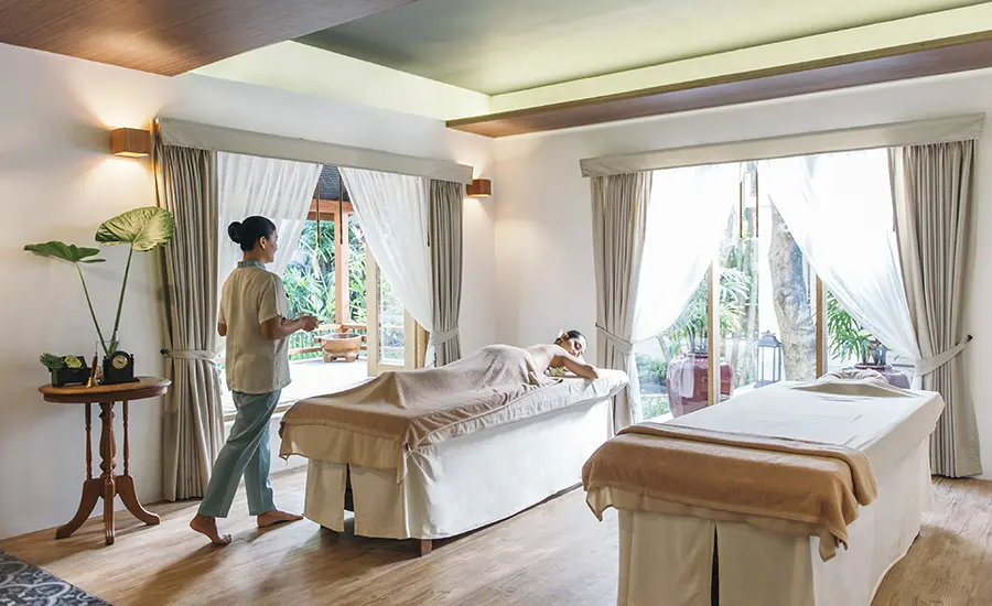 リゾート内のスパで、タイならではのトリートメントを受けてリラックス。