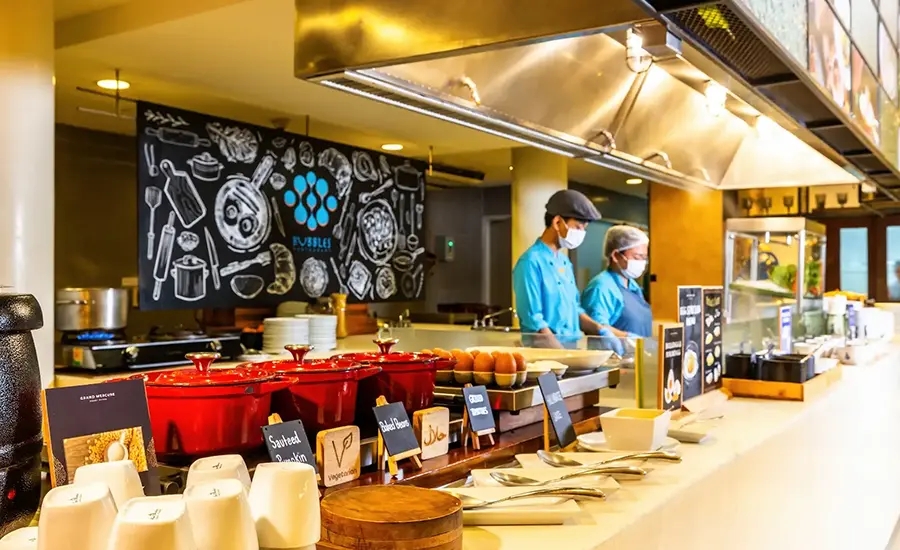 淹れたてのコーヒーと自家製ベーカリーを含む豊富な朝食をご用意しております。自家製パスタや中華麺など、本格的なタイ料理、ヨーロッパ料理、アジア料理を含むアラカルトメニューもご用意しております。