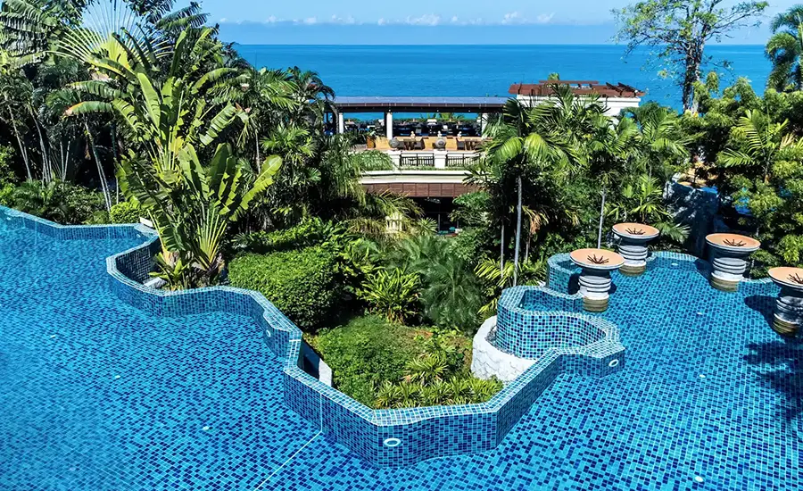 緑に囲まれたラグーン スタイルの美しいプールが 3 つあり、水泳や日光浴に最適です。リラックスできるサンベッドも豊富に用意されており、冷たいドリンクもいつでも手軽にお楽しみいただけます。