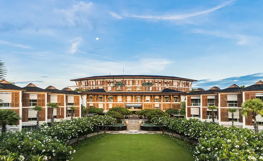 ホアヒン中心部から車で約5分。ナイトマーケットやショッピングセンター『マーケットビレッジ』も近く便利な立地。客室は45㎡~と広めの造りで全室にデイベッド付きのテラスがあります。ゴルフ場も近く、ゴルフ目的のお客様には特におすすめです。ホテルの朝食ブッフェは料理の種類が多くレベルが高いと高評価。