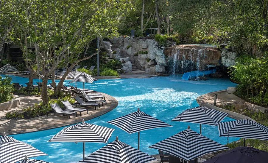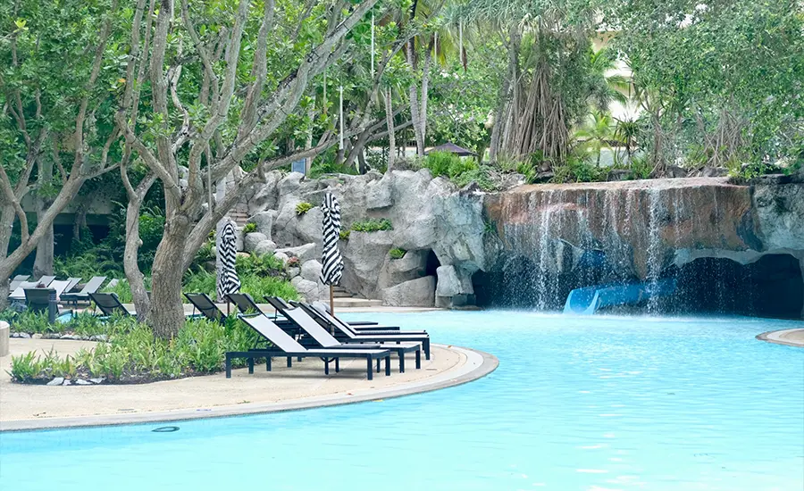 お子様用のウォータースライダーを含む5つの屋外プールを備えており、目的に合わせてプールサイドでリラックスしたり、水遊びを楽しんだりできます。