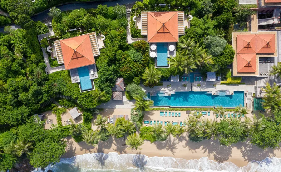 サンスクリット語で「天国における第三の庭園」を意味するプライベートビーチを有するラグジュアリーヴィラリゾート。全64棟の贅沢なプールヴィラは135㎡からと広々としており、全室オーシャンビュー、プライベートプールと深型バスタブ付き。美しいトロピカルフォレストに静寂な湾をつつみ込むように階段状にヴィラが点在。
