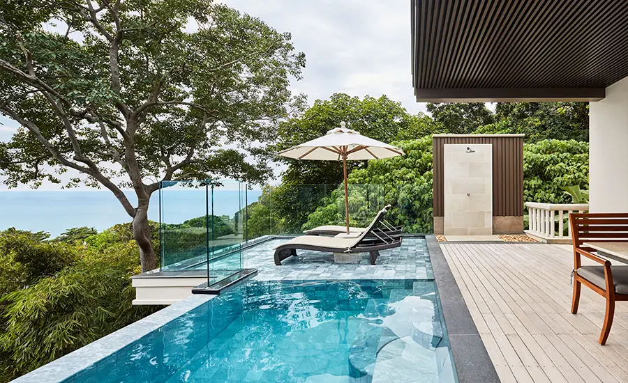 全室オーシャンビューのプライベートプールで、人目を気にせず、一日中泳いだり日光浴を楽しんだりしてお過ごしください。