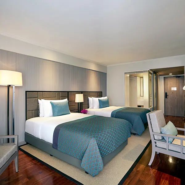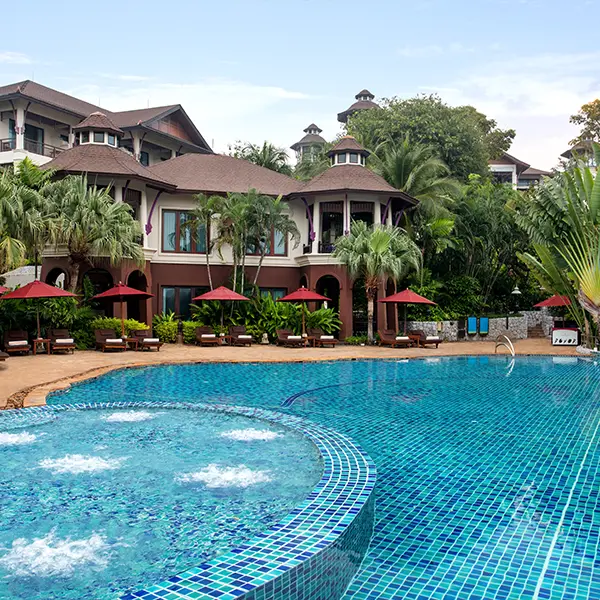タイ湾を見下ろす緑豊かな岬に位置し、ビーチフロントのロケーション。快適で広々としたエレガントな内装の客室では、ゆったりとした贅沢なひとときをお過ごしいただけます。アジア風のコンテンポラリーなデザインと広々としたバルコニーがセンスの良い空間を演出しています。 館内の3つのレストランも充実。